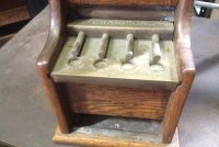 Antique Gotham 1cent coin operated Champion vending machine in as found condition. Nice patina. Coin mechanism sticks but working. A good cleaning and she’s ready to go…….