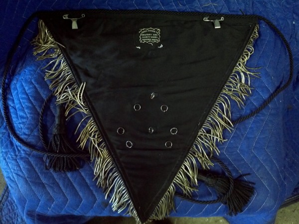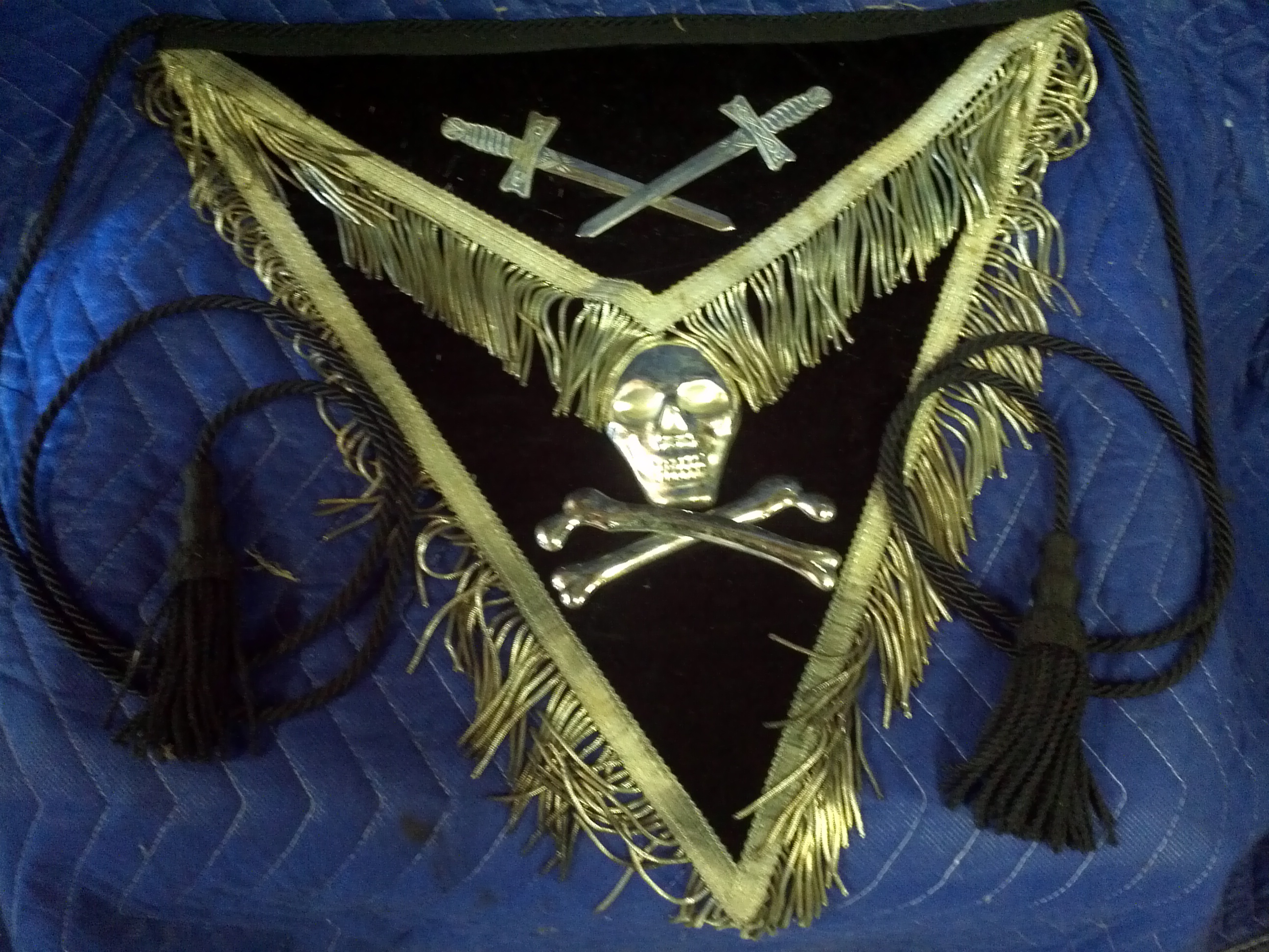 1800’s Masonic Knights Templar apron in as found condition. Measures 18″ with original skull and cross bone design. 2 available. Nice condition for it’s age………