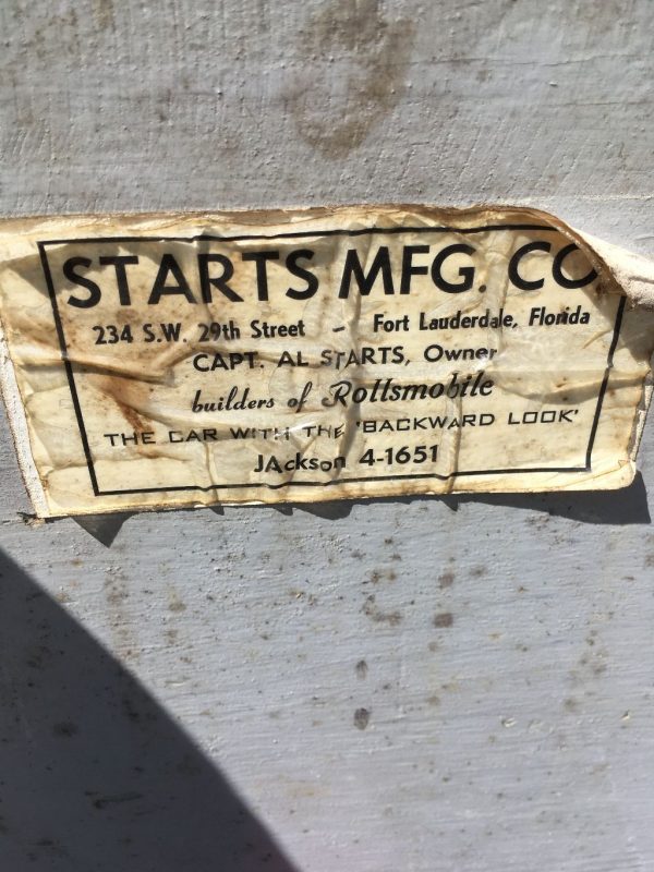Rollsmobile from 1958-60, and then as the Horseless Carriage Corp. on through the 1960s, was apparently one of a handful of companies about that time to offer three-quarter-scale replicas of early automobiles, in this case of the 1901 Curved Dash Oldsmobile.