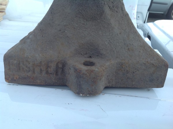 Heavy cast iron antique blacksmith anvil in as found condition, marked Fisher 1907. Measures almost 25″ long and weighs in over 125 lbs. Nice old pitina and ready for service……………