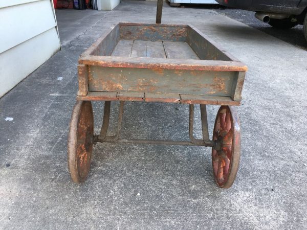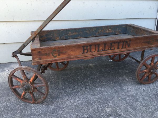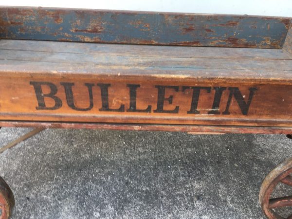 Wonderful old antique 1918 Philadelphia Bulletin newspaper wagon in as found condition. Looks to be all original. Great patina. A nice display item……….