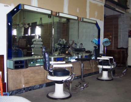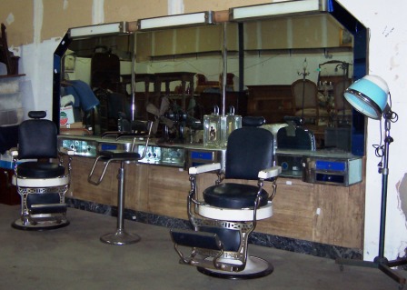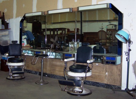 1920’S Art Deco Barber Shop Back Bar And Chairs