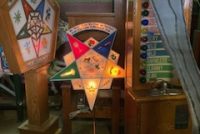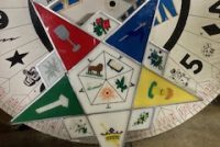 1920’s illuminated Star Masonic Temple Eastern Star reverse painted sign in as found working condition. Recently removed from a South Jersey Masonic Temple. Star comes with complete with switching mechanism ………..