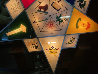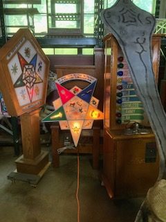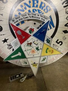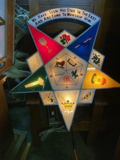 1920’s illuminated Star Masonic Temple Eastern Star reverse painted sign in as found working condition. Recently removed from a South Jersey Masonic Temple. Star comes with complete with switching mechanism ………..