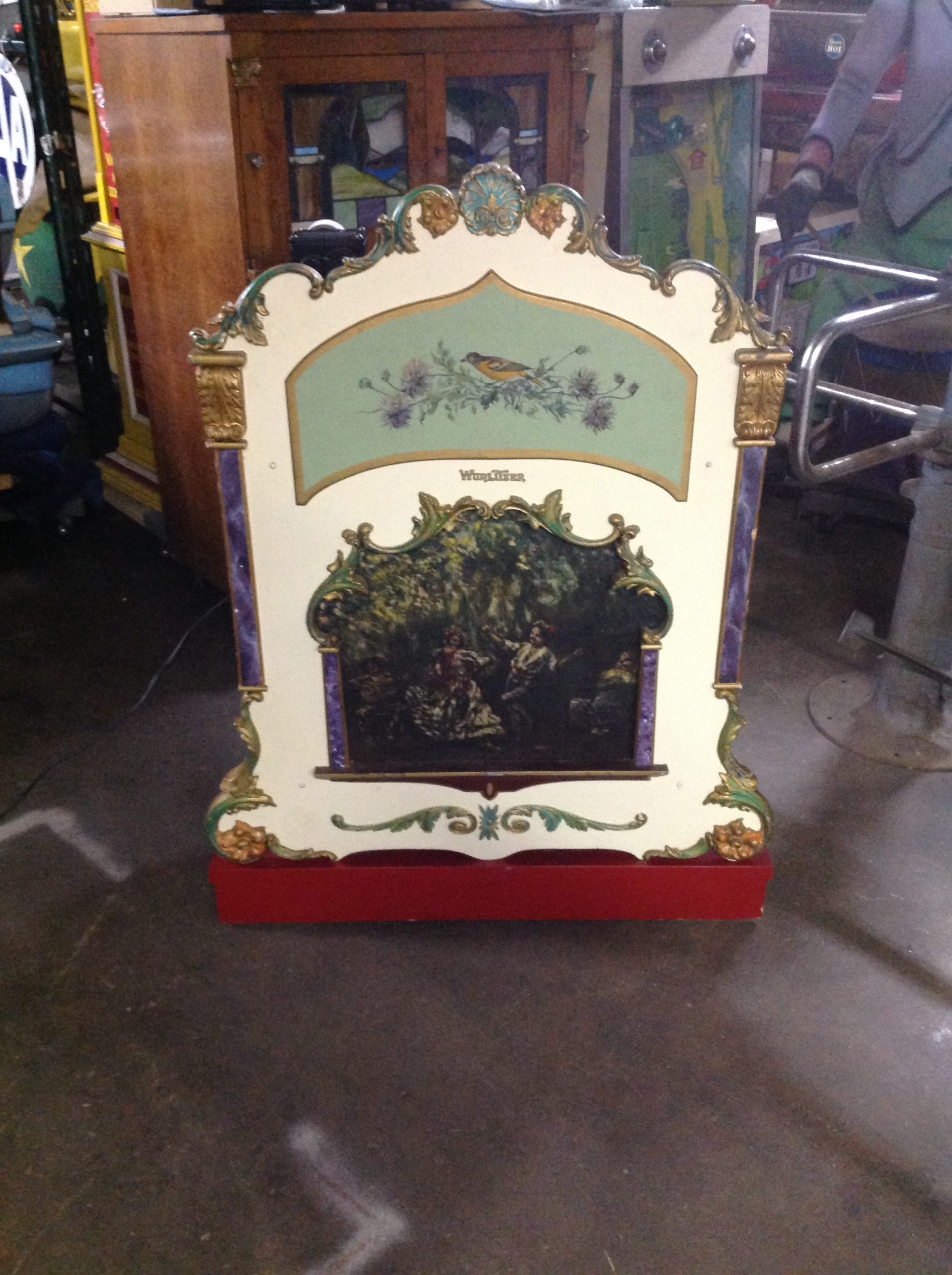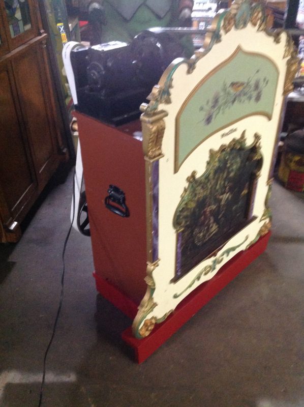 Rare Wurlitzer Style 50 miniature band organ in as found working condition. Manufactures in 1931 by the Rudolph Wurlitzer Manufacturing Company as the smallest instrument they or any American builder ever produced. Not many produced and even fewer surviving the years of use at children’s  outdoor amusements including the numerous kiddielands that sprang up around the country in the decades after World War 1. The interior of the Style 50 is filled with music making pipes, chest, pump and spooled paper roll control system that gives life to the band organ. Much more information is available on this rare beauty online. Just Google. A real piece of Americana in beautiful condition. Don’t let this pass you by………. Video available upon request.