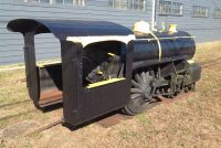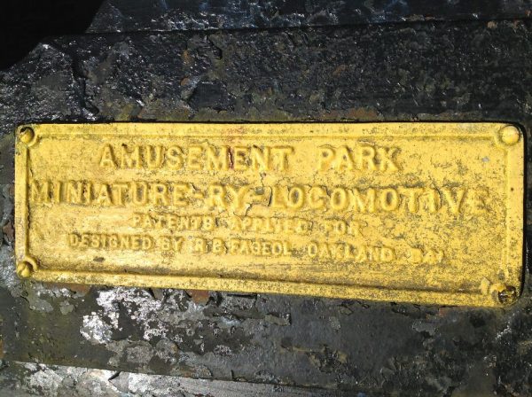 Amusement Park miniature train locomotive in as found condition. Built in 1924 and used at the 1933 Worlds Fair. Out of service for many years. All original as far as we can tell. Will need restoration and motor work to make it functional. Missing bell and one lantern. Lantern is in our possession but needs to be reattached. No track. Measures over 12′ long x 4″ wide. Weighs in at 4 ton. A true train collectors dream…………