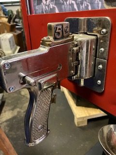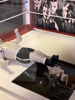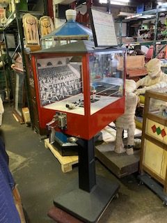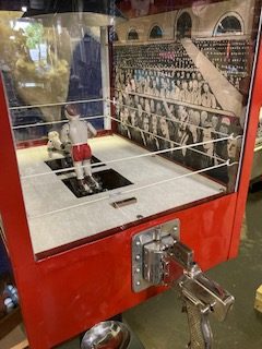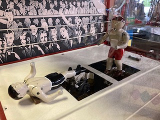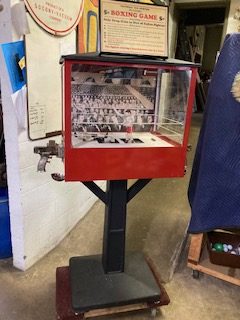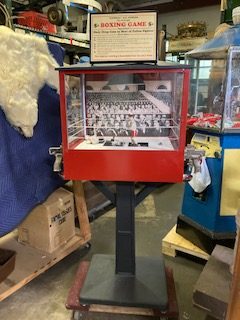 Fantastic 1928 National Novelty Knock Out Fighters coin operated penny arcade machine in as found working condition. Fantastic shape with marquee. Needs to be in your game room………….