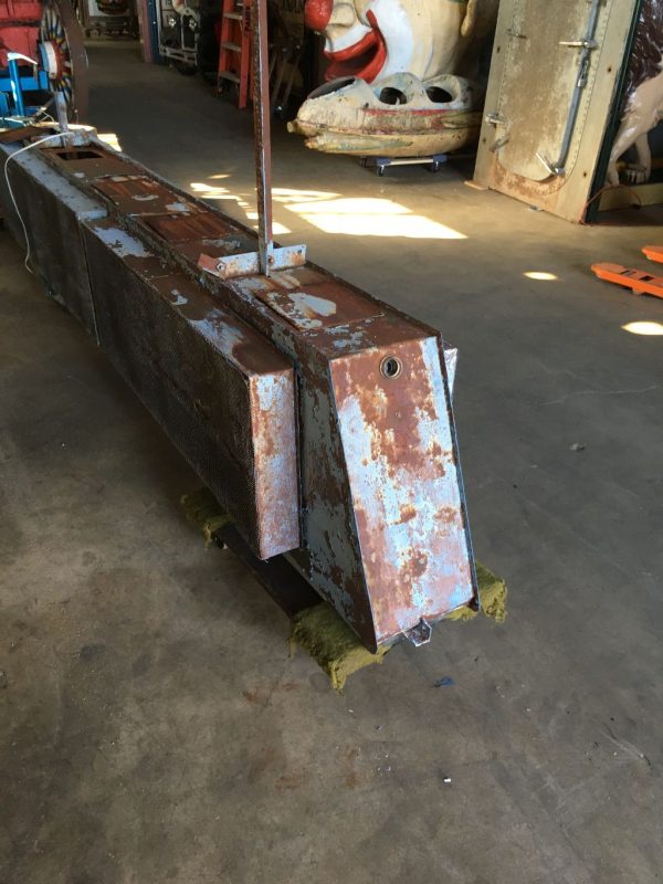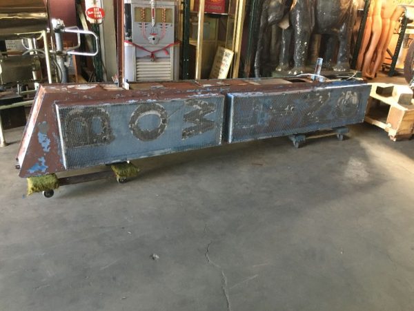 1950’s bowling alley double sided neon sign in as found working condition. Just removed from a closed bowling alley starting business back in the 50’s. Can has some minor rust and rot but otherwise a very sold frame for hanging. Neat old sign with plenty of character….