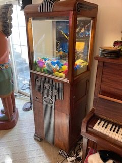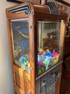 1933 coin operated art deco Novelty Merchantman penny arcade claw machine in as found working condition. Back scenery has been replaced but similar to the original. Need more information, just ask………..