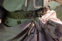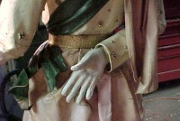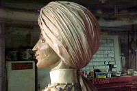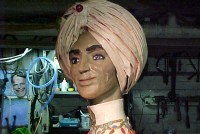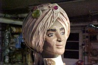 Papier mache and cloth swami that stood in the entrance way of a funhouse to attract customers. The clothing is original and preserved with some type of resin material. All original with the exception of the ball. Professionally cleaned with minor restoration. He may be able to tell your future…………