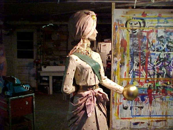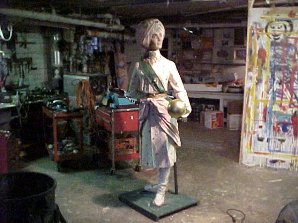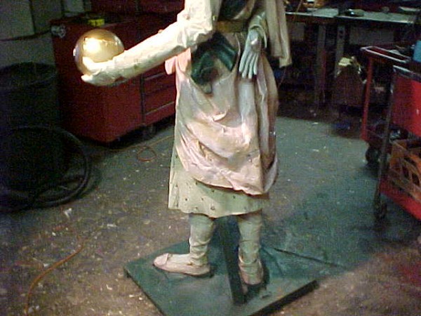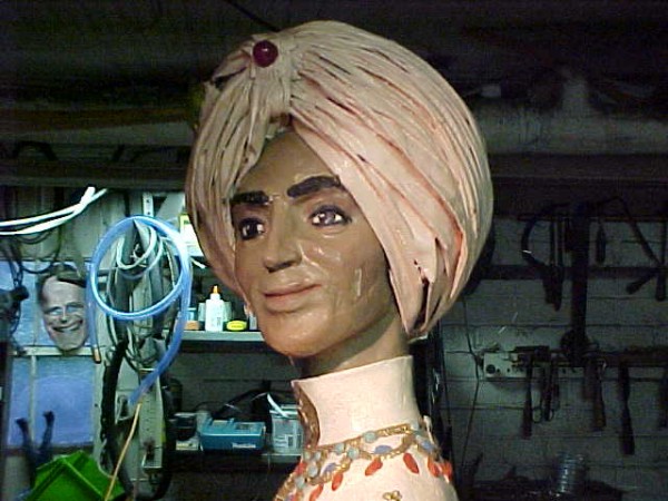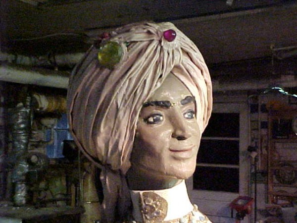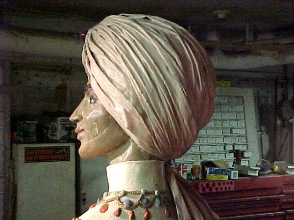 Papier mache and cloth swami that stood in the entrance way of a funhouse to attract customers. The clothing is original and preserved with some type of resin material. All original with the exception of the ball. Professionally cleaned with minor restoration. He may be able to tell your future…………