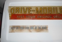 1940’s amusement park penny arcade Mutoscope Drive Mobile in as found condition. Cabinet shows some wear but the mechanical parts look to be all there. Someone added a speaker that’s not original to the machine. Top glass has been cracked and is missing the word Mutoscope but otherwise the glass is original and has the important section identifying “Drive Mobile. Some parts of the graphics have been updated and front wheels are misisng on the car. Has not been plugged in so not sure what features work. Missing the front clear glass but the large center screened glass looks to be in very good condition. Nice machine and hard to find…………