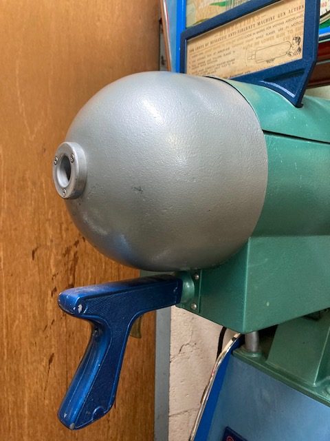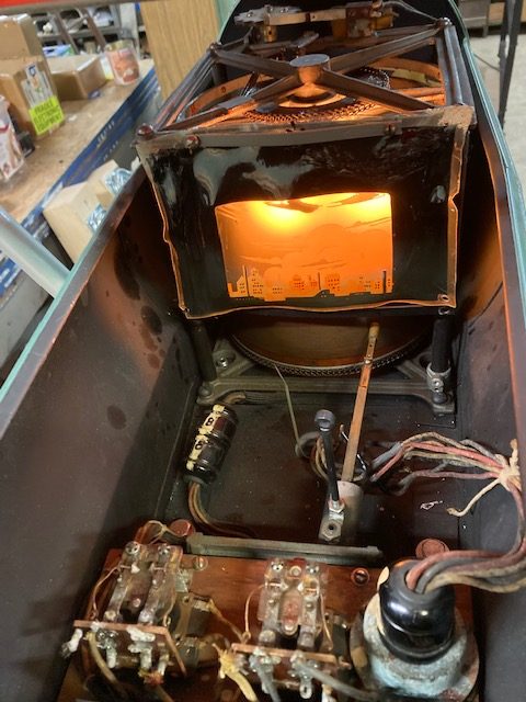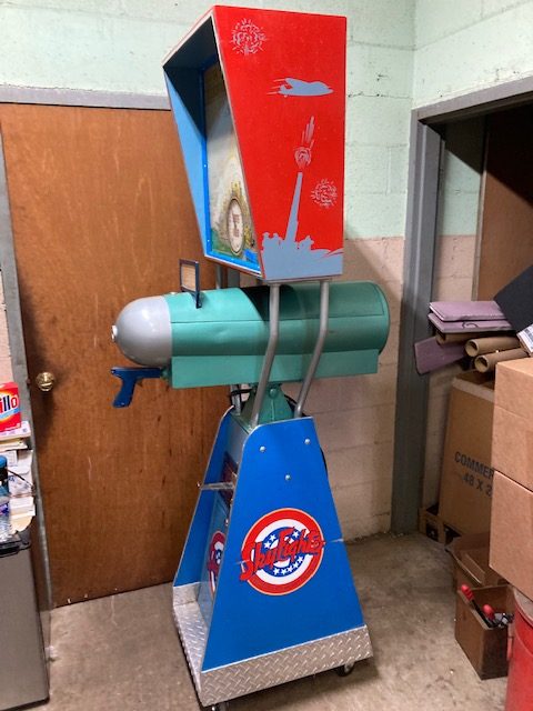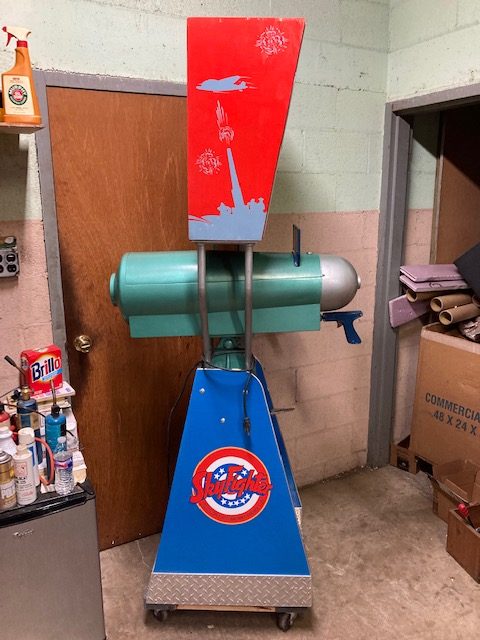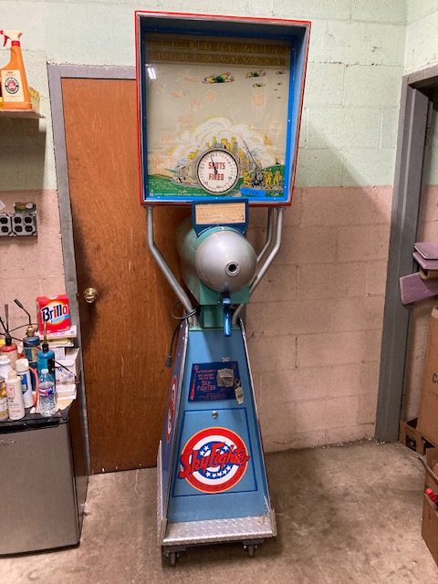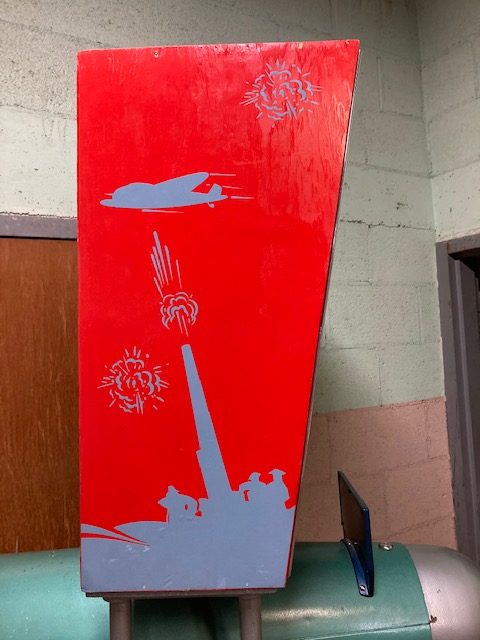 1940’s coin operated penny arcade Mutoscope sky fighter arcade game in as found condition. Machine has been nicely restored and modified for a child’s use. Game fires up and the animated screen works when a coin is deposited but needs some adjustment to get the score to work properly. Nice overall condition with a very good backglass. Restoration was done nicely but has a few scratches. Great addition to your coin operated collection……….
