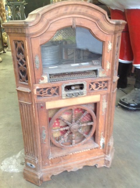 Antique Wagon Wheel Wurlitzer 780 jukebox in as found condition. Looks to be complete but will need restoration. No keys. As questions. Sold as is………..