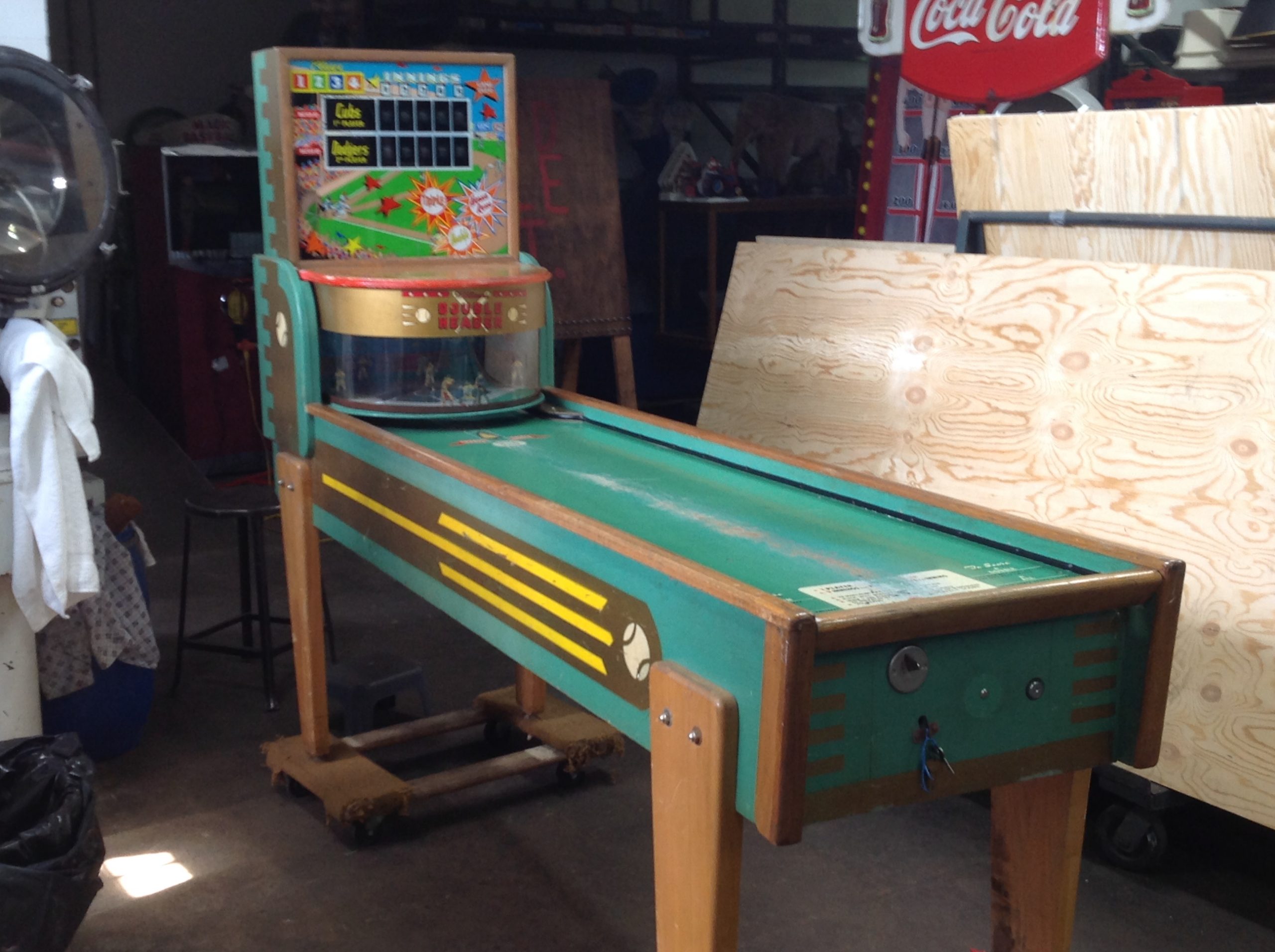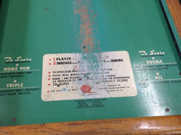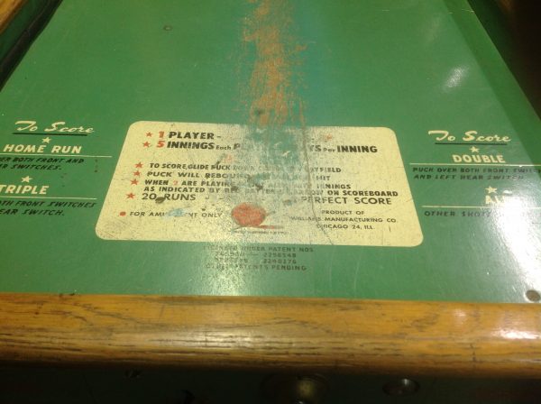 Antique 1950’s William Double Header Cubs vs Dodger arcade game in as found condition. Will need to be serviced but otherwise in very good condition with a fantastic backglass with very minor peeling. Hard to find game in any shape. Should be part of your collection…………