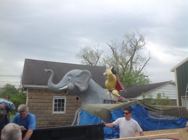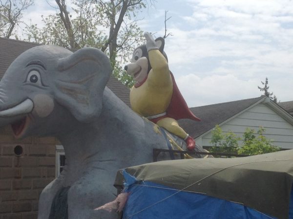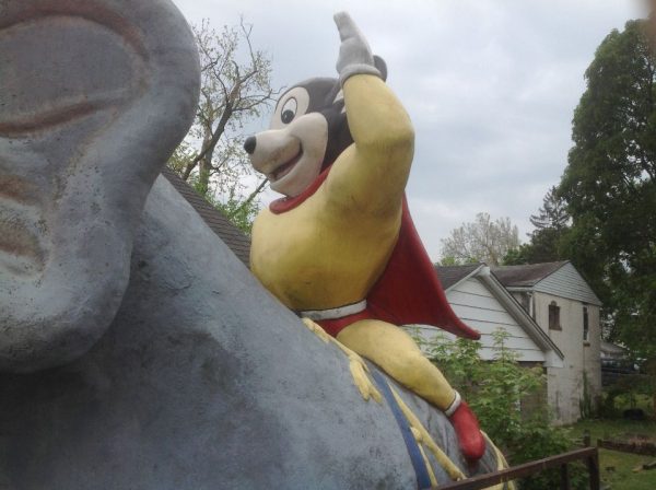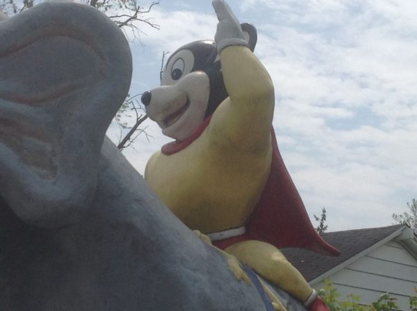 1950’s Amusement Park Elephant & Mighty Mouse Fiberglass Statue