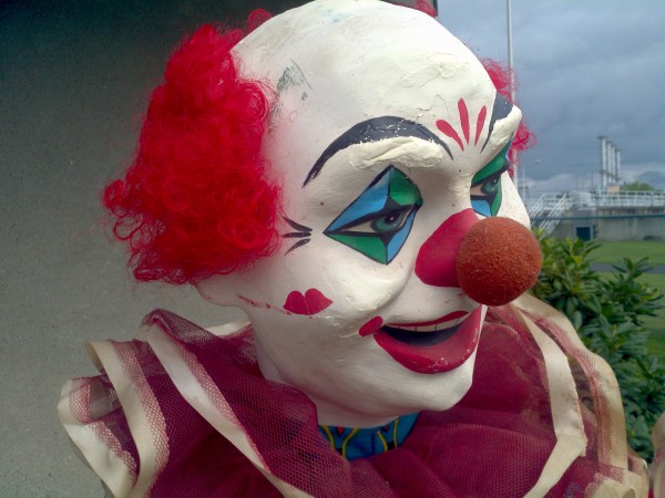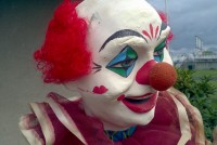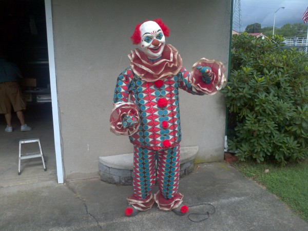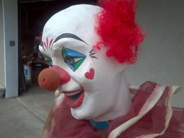 Massive 6’1″ vintage 1950’s paper mache amusement park fun house animated clown in as found condition. He rotates side to side as the right arm moves. Nice condition for his age. May need a little cleaning but otherwise ready to display. Great for any clown collection…….