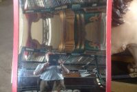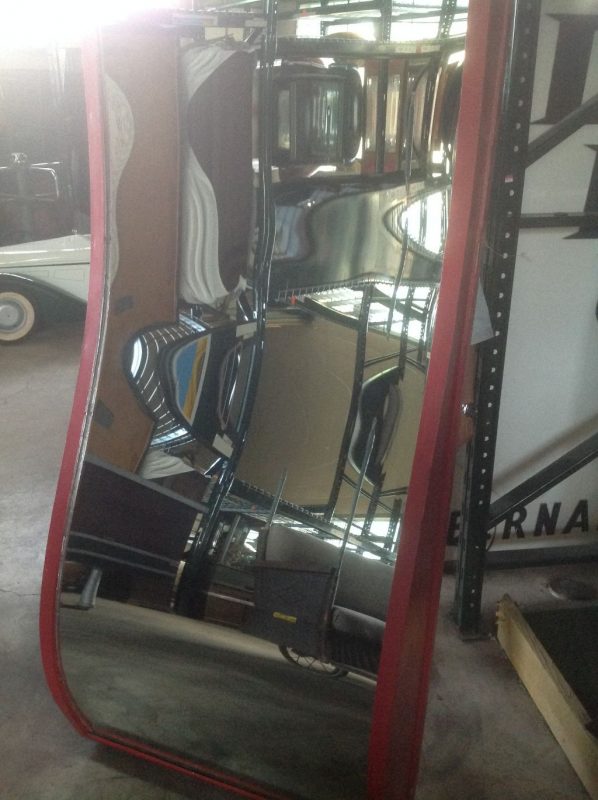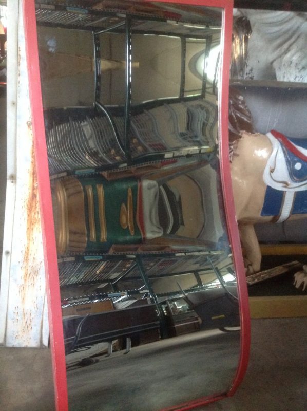 1950’s amusement park fun house glass mirror in as found condition. Near perfect with only a few minor flaws near the mirror sides. Measures 32″ wide x 6′ tall. Old mirror and just beautiful………