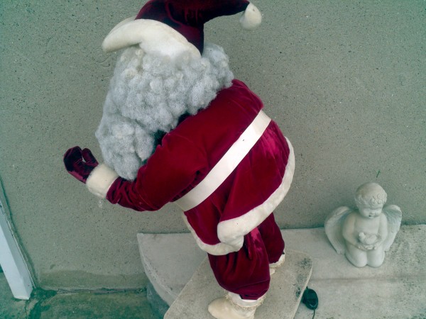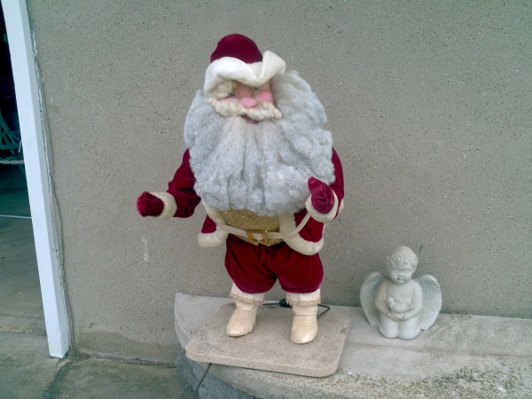 1950’s Harold Gale animated Santa in working condition. Santa bows at the waste and trun his head from left to right. Measures about 30 tall with original felt outfit. A great addition to any Christmas display…………