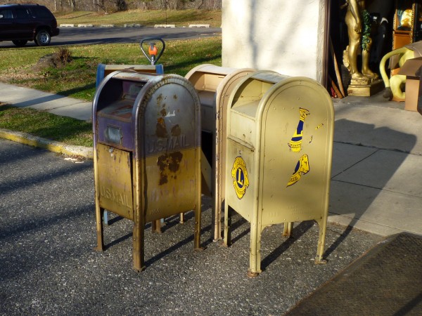 Your choice of 4 vintage 1950’s style corner mail boxes in nice condition. Solid and ready for displaying or have them repainted to fit any decor. All in about the same condition but ask questions on any specific one. You don’t see these for sale very often………..