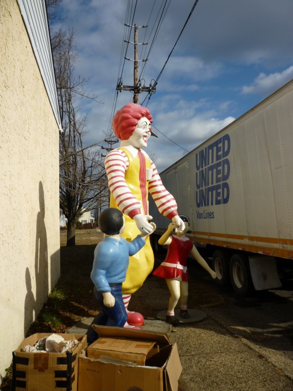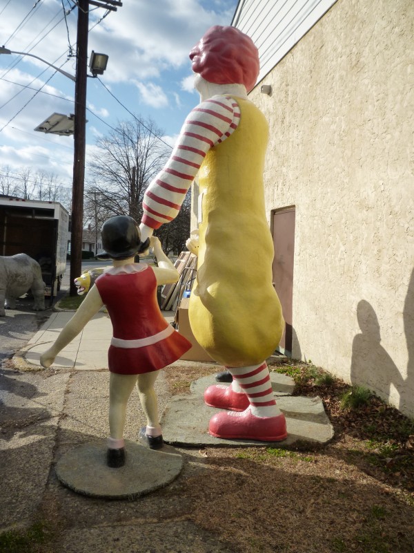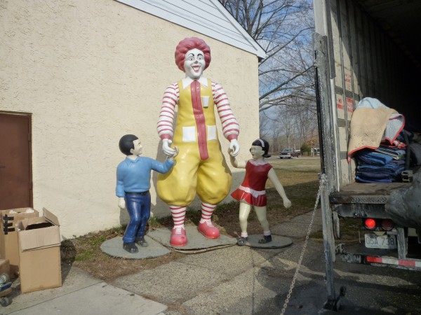 Just in, extremely rare 12′ fiberglass Ronald McDonald & Kids statue in very nice condition. May need a little touch up here and there but otherwise in excellent shape. Wooden bases will need some attention. Not many of these were produced and even fewer survived. Nows your chance to own a piece of Americana at a fraction of it’s original cost. A true collectors item……….