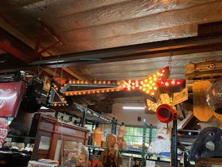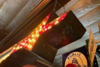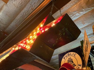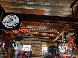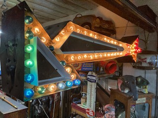 Wonderful old vintage 1950’s mid-cenrtury double sided flashing arrow sign in as found condition. Sign works, complete with bulbs. Sign is in very nice condition with only 3 sockets that don’t light. These are getting harder to find in this condition……..
