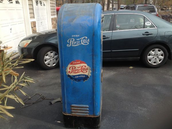 1950’s mid-century Jacob’s Pepsi Cola soda vending machine in as found condition. Appears to be complete with original cord. Has not been tested but we were told when last used over 30 years ago it kept soda cold. Will need restoration. Rare model to find in any condition…………….