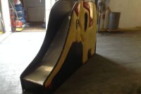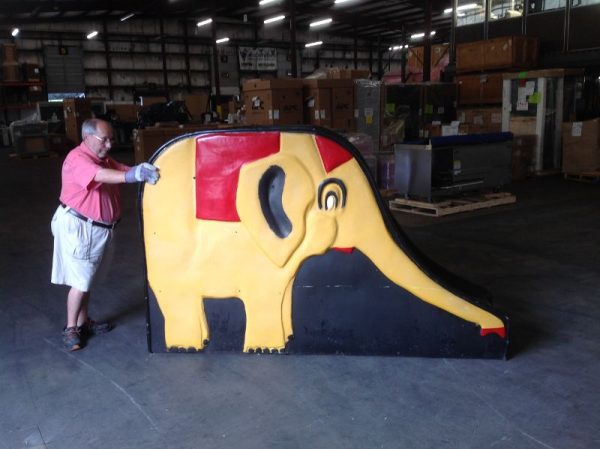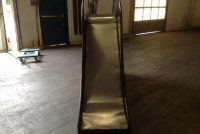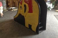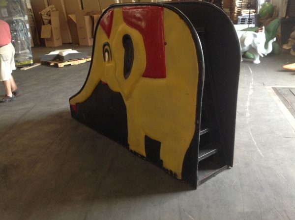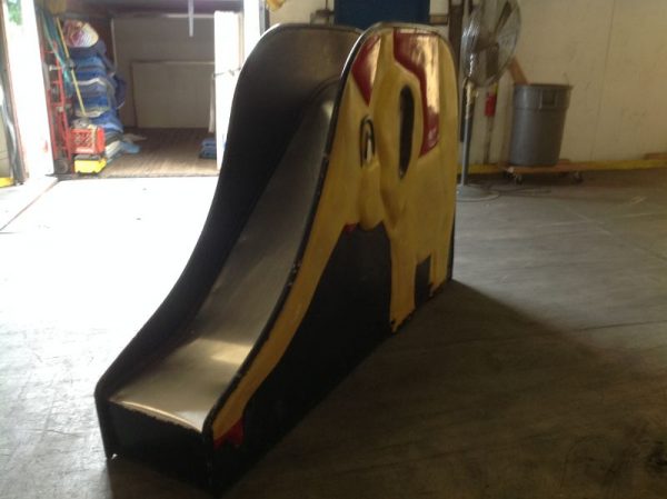 Interesting vintage elephant slide made by Miracle Equipment Company, Grinnell, Iowa in as found condition. Large heavy slide to entertain any child for hours. Steel construction, measuring over 6′ long. Suitable for outdoor or indoor use. Hard to find in this condition………