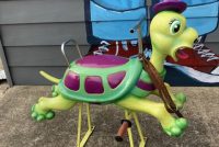 1950’s Mid-Century wooden Carousel Merry Go Round Turtle by Bernard Kindt in as found condition. Turtle along with other animals were recently found after being in storage for 25 years. Hard to find figures, highly sought after by collectors. Bernard Kindt was a noted Belgian sculptor who specialized in making carousel animals and animated cartoon figures. Nice figure with some minor scuffs. He really moves at a snails pace………