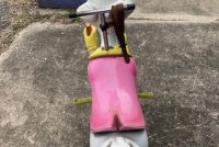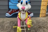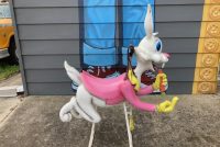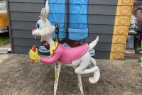 1950’s Mid-Century wooden Carousel Merry Go Round Rabbit by Bernard Kindt in as found condition. This and others we have for sale were discovered in a barn in Upper PA after being in storage for over 25 years. Bernard Kindt was a noted Belgian sculptor who specialized in making wood carousel animals and animated cartoon characters. Highly sought after by collectors. Very hard to find. Decent shape overall with some minor paint chips………