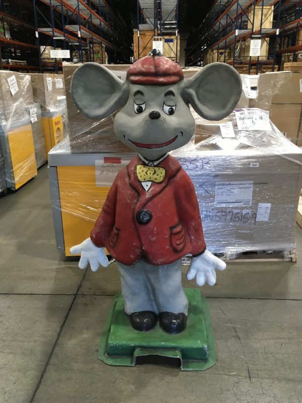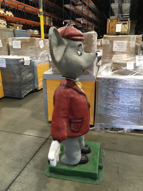 Vintage miniature golf fiberglass Topo Gigio mouse in as found condition. Measures 64″ tall, 48″ hand to hand. Nice park paint. Original miniature golf figures are getting harder to find. Make your child happy………..