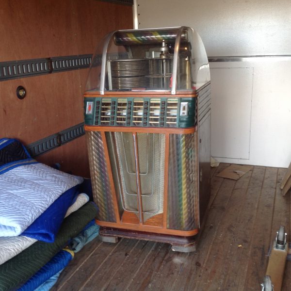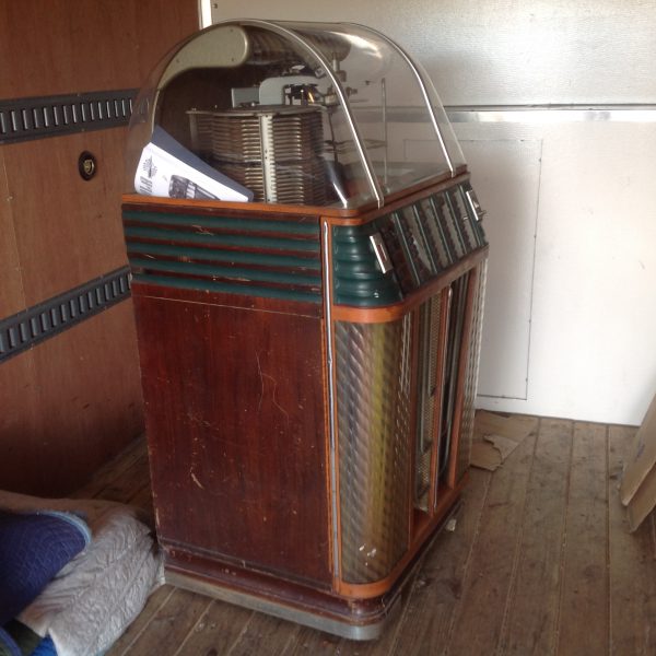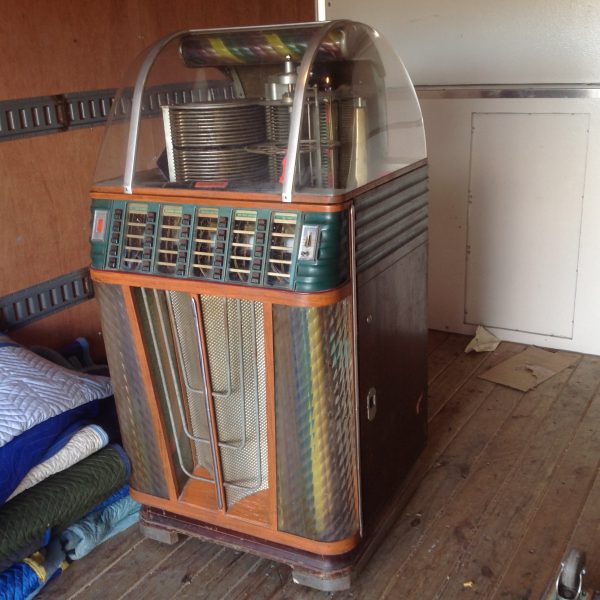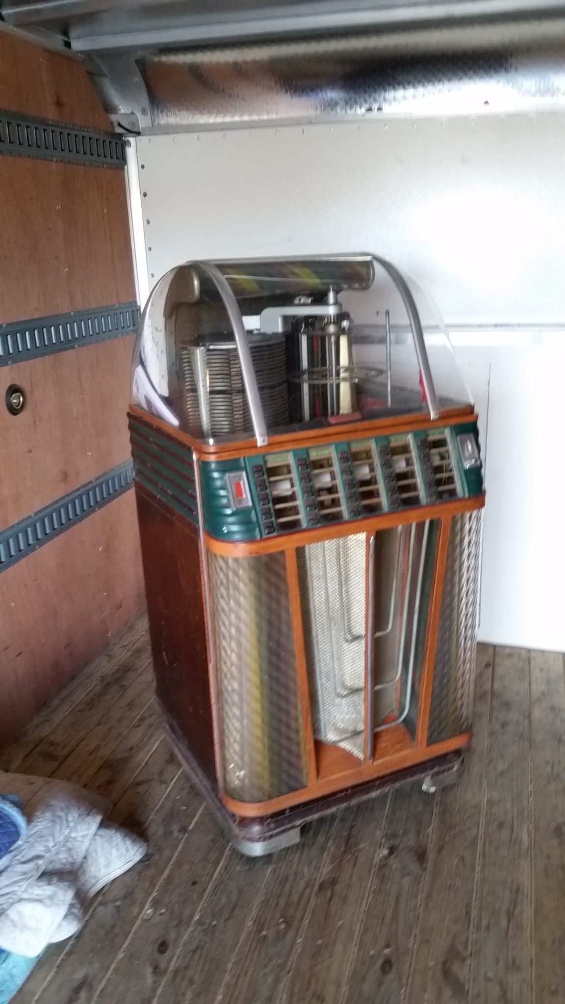 Vintage old 1952 Rockola Super Rocket jukebox in as found condition. Will need some restoration but look complete with the exception of a piece of missing chrome trim on left side and no coin mechanism. Has not been tested but amp is inside. No cracked plastics. Nows your chance to own a classic 50’s box………….