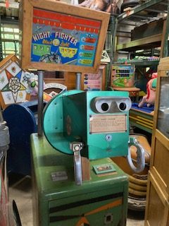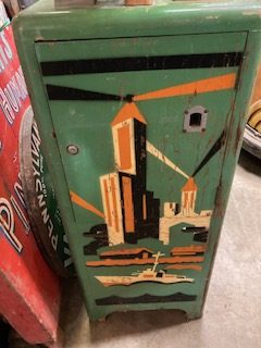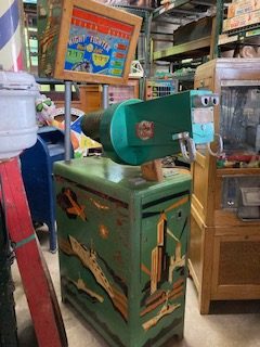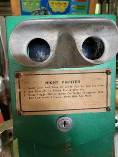 Vintage 1953 hard to find penny arcade Genco Night Fighter gun game in as found condition. Game will need to be tightened and serviced to make her work correctly. No keys, backglass appears to have little flaking and the cabinet is in decent shape. Overall, the machines appears to be complete and worthy of some servicing and restoration…………..