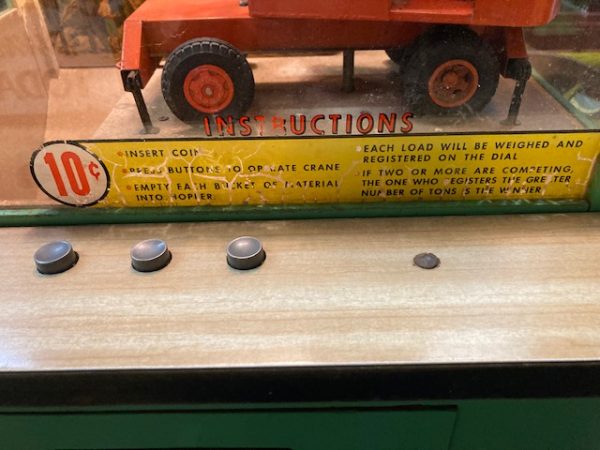 1956 coin operated penny arcade sidewalk engineer game in as found condition. Nicely working with new timing motor installed. Appears to be original with decent graphics, glass and marquee. Not an easy machine to find in this condition………..