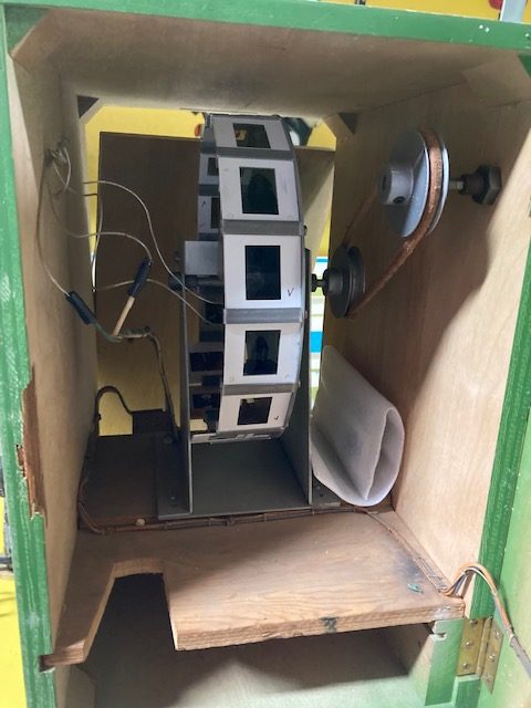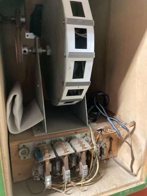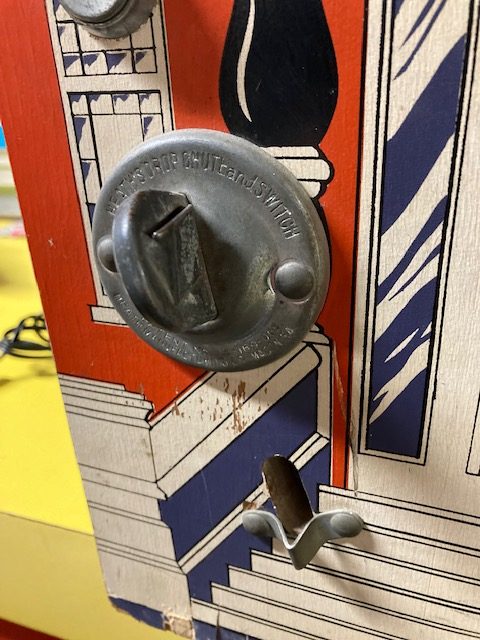 Vintage 1957 Exhibit Supply coin operated School For Young Ladies peep show in as found working condition. Insert coin, light light, turn knobs, peer into lense and view pictures of the young lady models. Nice overall condition with keys. Game is on timer to view images. Great old arcade favorite………