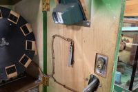 1957 Exhibit Supply coin operated arcade Peeping Tom game in as found working condition. Insert coin, push button to advance reel, peer into lense, light lights and customer can view pictures of the Peeping Tom game. Game is on timer, so view fast. Neat old arcade favorite. Nice overall condition with keys………….