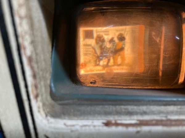 1957 Exhibit Supply coin operated arcade Peeping Tom game in as found working condition. Insert coin, push button to advance reel, peer into lense, light lights and customer can view pictures of the Peeping Tom game. Game is on timer, so view fast. Neat old arcade favorite. Nice overall condition with keys………….