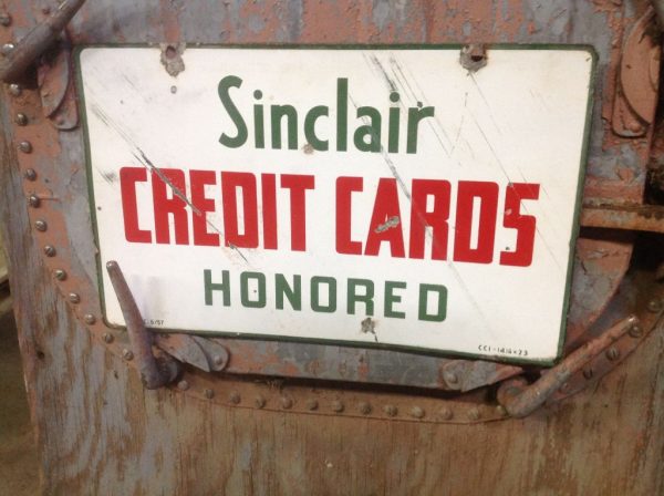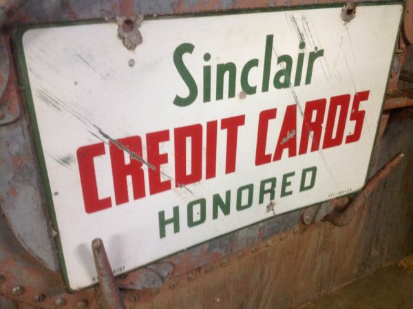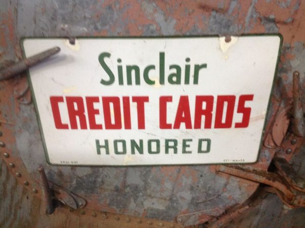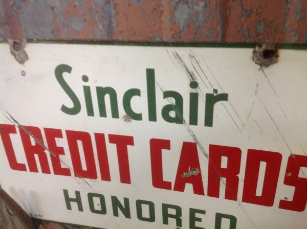 1957 Double Sided Sinclair Gas Porcelain Credit Card Sign