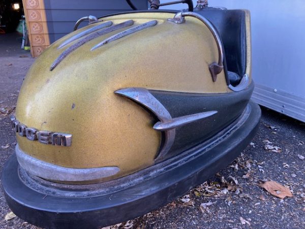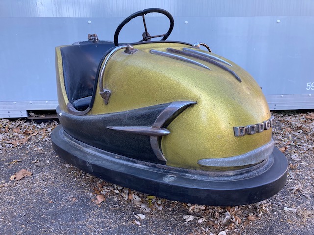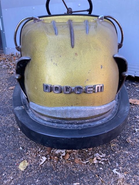 1959 Mid-Century Dodgem amusement park bumper car in as found condition. Nice overall shape with a few dings needing some restoration to the interior. Bumper cars are getting harder and harder to find. Please find a good home for this one……………………
