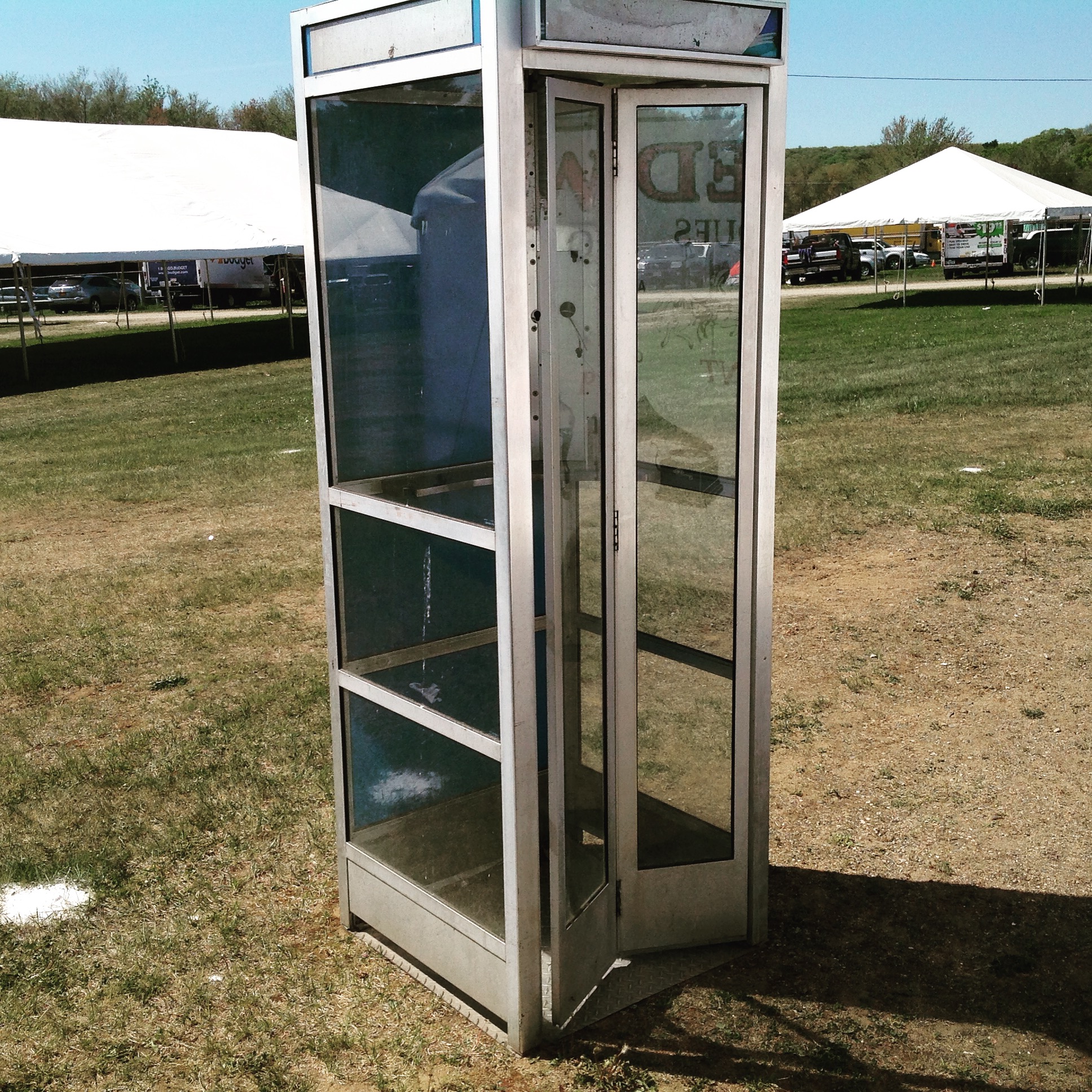 1960’s aluminum corner phone booth with phone in as found condition. Advertising top pieces will need vinyl removed to reveal phone booth name. Bi fold doors work with some scratches to the metal. Overall, booth will need some polishing and tightening but in very nice shape. Phone will need to be wired in…………..