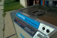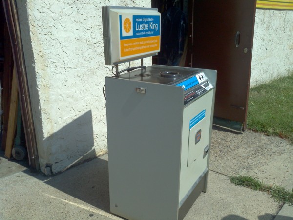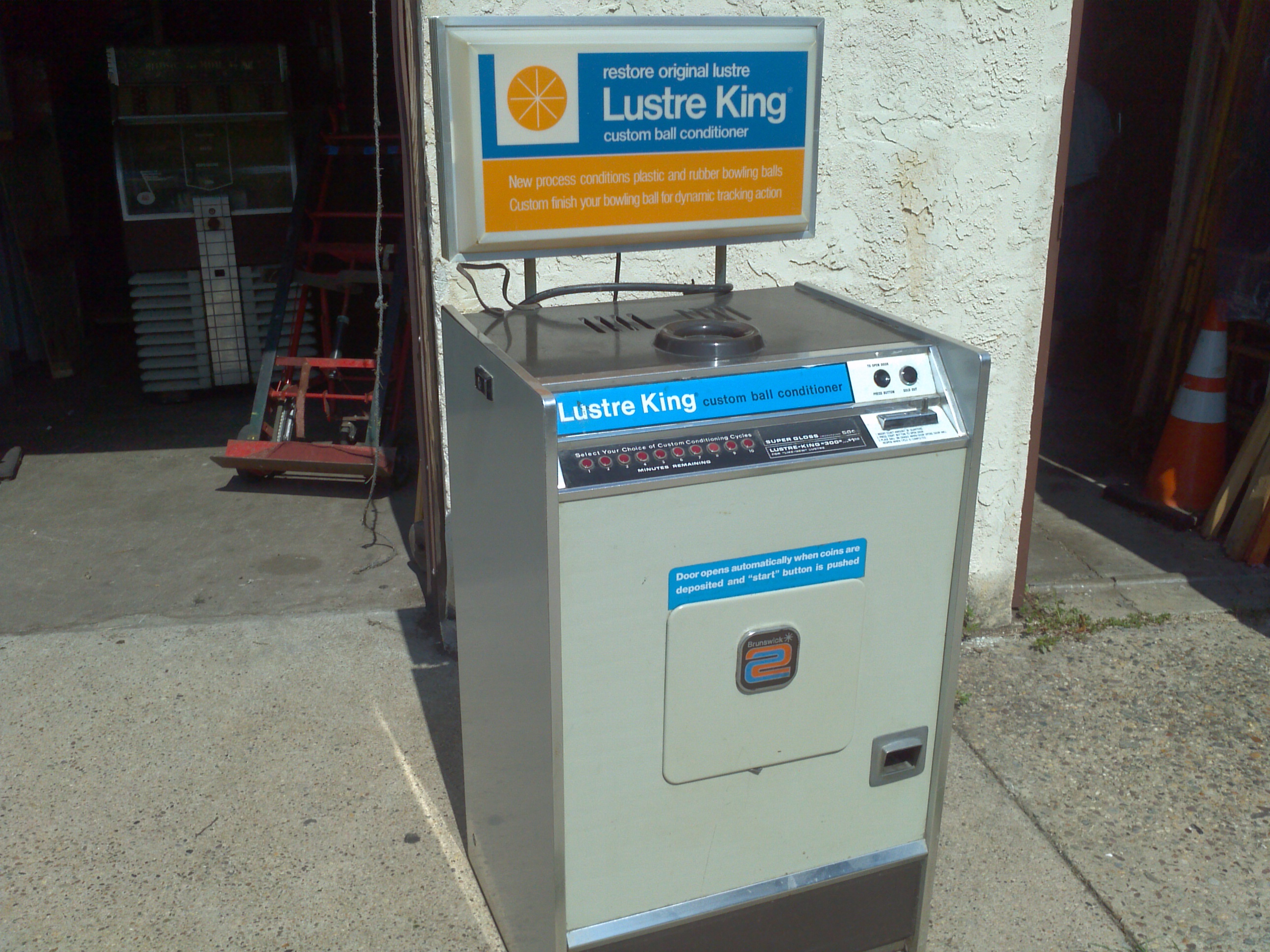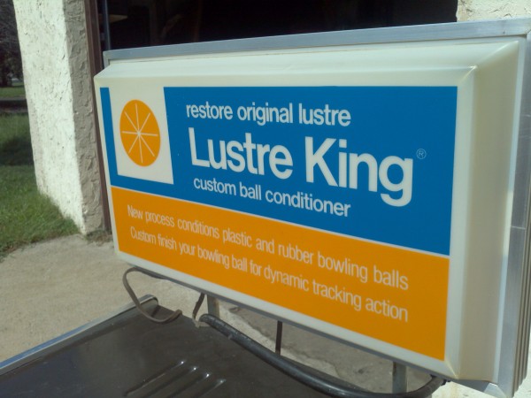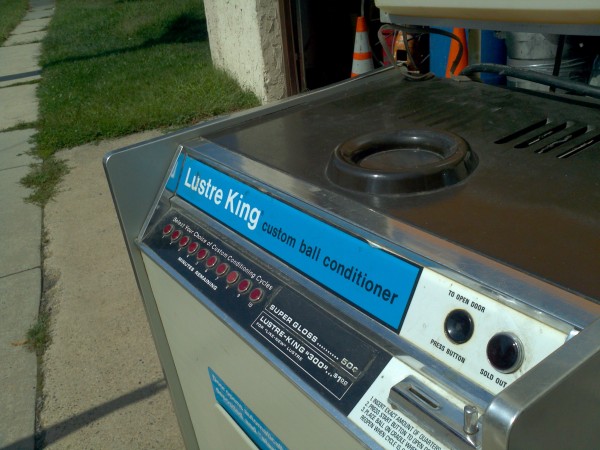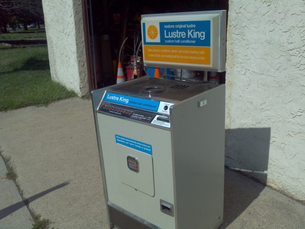 1960’s coin operated Luster King bowling ball polishing machine from a now closed bowling alley. Working condition. Deposit coin, drop in ball and within minutes your ball is polished and ready form play. Make sure all your balls are polished…………