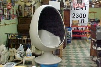 For your viewing pleasure is a groovy 1960’s egg chair complete with two heavy duty inside speakers, two external jacks and separate fuse holders. Back in the day this chair sold for $3000 and was manufactured by Starkey Laboratories, Inc. Measurements are 58″ tall x 36″ wide x 31″ deep. Will need a good cleaning and some restoration but otherwise good condition. A neat item for any room…………