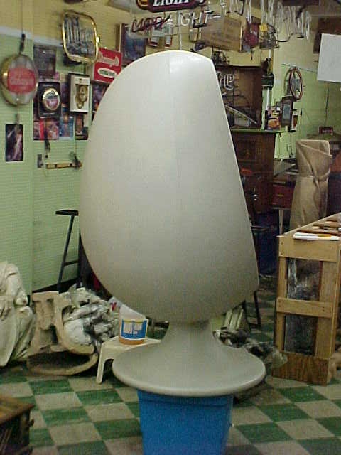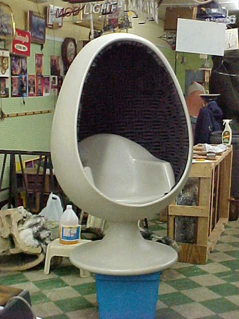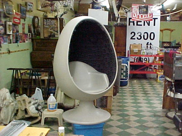 For your viewing pleasure is a groovy 1960’s egg chair complete with two heavy duty inside speakers, two external jacks and separate fuse holders. Back in the day this chair sold for $3000 and was manufactured by Starkey Laboratories, Inc. Measurements are 58″ tall x 36″ wide x 31″ deep. Will need a good cleaning and some restoration but otherwise good condition. A neat item for any room…………