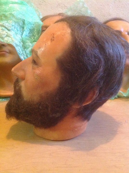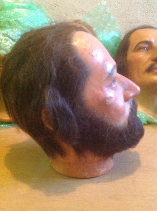 Vintage 1968 Worlds Fair Hemisfair wax museum head in as found condition. Head is over 50 years old from the exhibition titled “The Confluence of Civilization in the Americas”. Head has face rubs as expected from wax of this age. Signed Stubergh. Name of head unknown…………