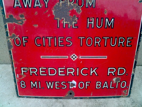 Rare 5 Oaks Lodge porcelain sign in as found condition. Has some losses but otherwise a great sign measuring 20″ x 24″. Nice addition to any porcelain sign collection………
