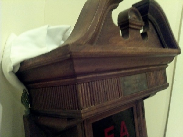 Massive, one of a kind, rare fire alarm bell from the Victor Talking Machine building, Camden, New Jersey. As found condition with front key and winding crank. Measures about 36″ from top to bottom and the bell is approximately 18″. Fantastic piece for any RCA Victor or fire alarm advanced collector. You will never see another one……….