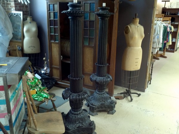 Pair of Antique Cast Iron Lamp Post
