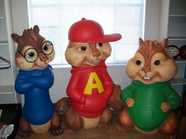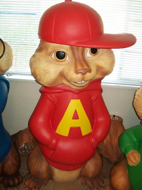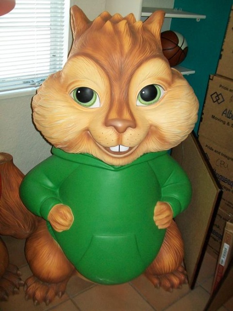 Alvin and the Chipmunks theater lobby display as used in theater’s to promote the movie. Large characters made of fiberglass and playful enough to win the hearts of children. Nice condition. Not commercially produced, limited number available to theaters. Would look great in any child’s bedroom…………