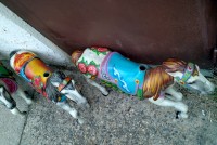Early 1950’s child size aluminum Allan Herschell carousel horses from a traveling carousel. Carousel was destroyed but the horses were salvaged. Nice park paint. Buy one or all, as 7 are available. Nice for decoration or a child’s room…….