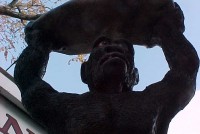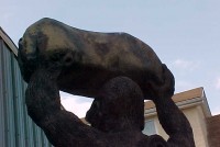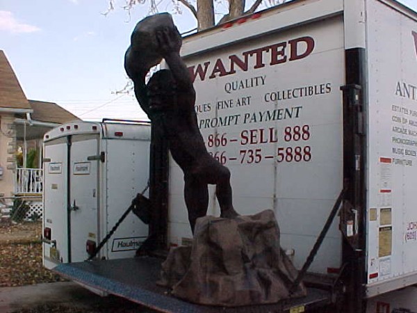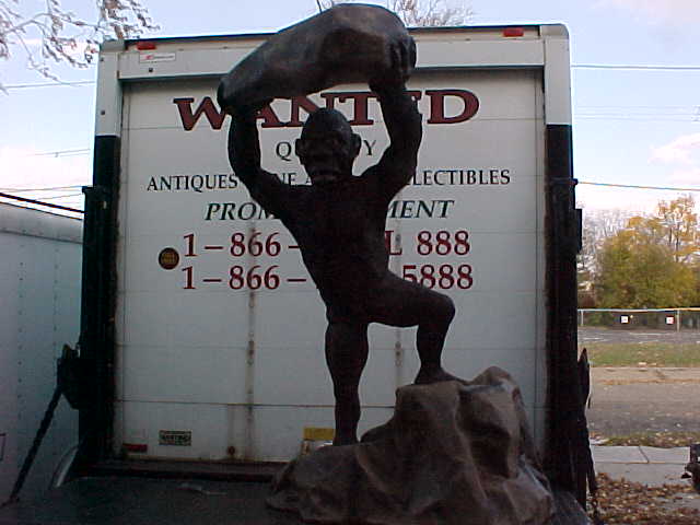 Caveman from a dark ride in the 1960’s from Wildwood, New Jersey. This creature stands about 6 feet tall and the rock is about 4 feet wide and 3 feet deep. Heavy duty fiberglass construction with metal bars for support. Skin is rough to the touch. This guy could scare the burglars away…………